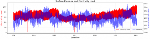 First, the historical electricity load data are extracted and separated into load-related information and consumer behavior patterns. Next, feature selection is performed on the weather data obtained from the ERA5 reanalysis dataset. The candidate weather parameters include temperature, solar radiation, wind speed, and surface pressure. The selection process is based on the correlation coefficient between each weather parameter and the electricity load. In the subsequent step, the signals of the selected weather features are further decomposed using wavelet transformation to capture both short-term variations and long-term trends. Figure 13 illustrates the next stage following the analysis in Figure 12, where the selected features are integrated into the machine learning model to forecast electricity load.