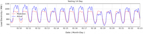 The hourly electricity load data were collected from the PLN Research Institute for the same period as weather data (1 January 2022-23 January 2024) with target predict for 14 days (9-23 January 2024). The dataset represents the total regional demand in megawatts (MW) for the Bali power grid. Minor gaps in the load time series (< 0.5%) were filled using spline interpolation, while obvious outliers were replaced with the local mean of the previous and subsequent 3-hour windows.