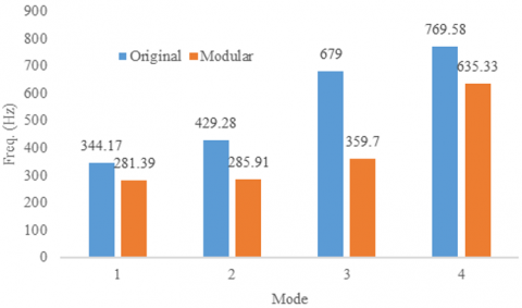 Figure 9. Graphical comparison of natural frequencies between the original and modular transmission neck