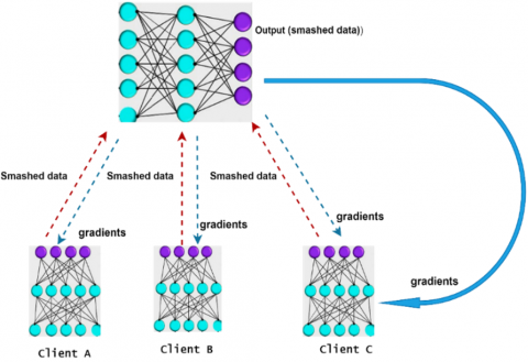Figure 1. Split Learning (SL) representation with three client devices
