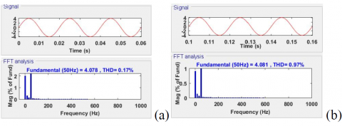 SPVG rating is 2.6kW and WTG rating is 1kW. The total system generates 3.6kW in islanded mode. 1kW load power demand is considered, then the following simulation results are presented at different common points of the system, individual system outputs, and load side. Also, 2kW and 3.5kW loads of respective load voltage and load current waveforms are presented. Further, current THDs are maintained in limits and their relevant details with graphs are presented.