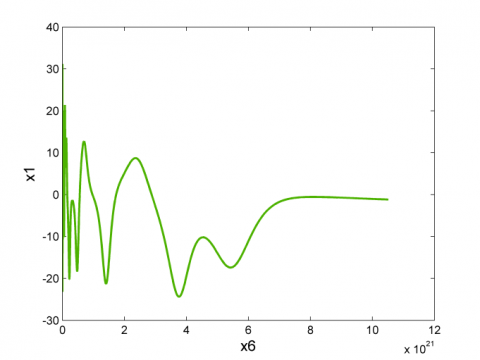 Figure 6. 2-D attractor of the system (1) in the $\left( x _ { 1 } , x _ { 6 } \right)$ plane