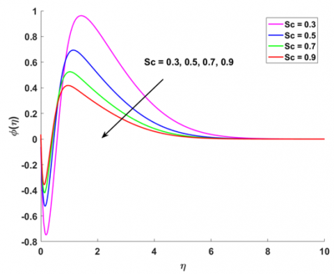 Figure 10. Effect of Sc on $\phi(\eta)$
