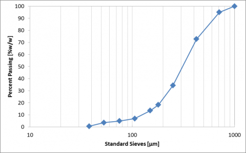 In this work, tap water is added to fine silica sand in order to perform specimens with different clay content (up to 50%w/w); the particle size distribution of sand is measured according with UNI EN 933-1:2012 and showed in Figure 3.
