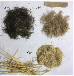 Figure 5. Fillers used for the mixture; a) basalt, b) jute, c) straw