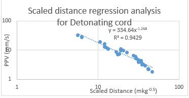 Figure 4. Scaled distance regression analysis equation using the Detonating cord