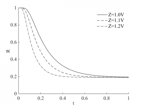 In the physical sense, the conditional probability density of the first passage time refers to the conditional probability density of the system damage at a certain point in time. It can be seen from the simulation results in Figure 5 that larger excitation corresponds to a higher and earlier peak. The vibration state of the system near the peak is the most complex, and the probability of first passage failure is the highest. It is worth noting that the peak value corresponding to Z=1.2V is close to twice that when, indicating that when the system reliability is rapidly reduced, even a small excitation change to the overall failure process will bring about a very significant local difference.