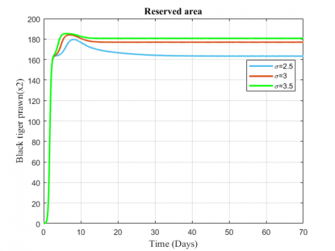 Figure 4. Variation of black tiger prawn inreserved area for different values of $\sigma$