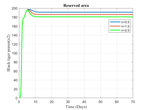 Figure 7. Variation of black tiger prawn in reserved area for different values of n