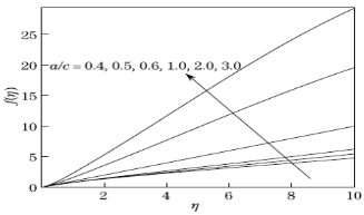${f}'(\infty )=\frac{a}{c}$,${g}'(\infty )=1$, $\theta (\infty )=0$:at $η→∞$ (35)