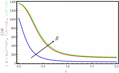 $T=({{T}_{w}}-{{T}_{\infty }})\theta (\eta )+{{T}_{\infty }}$ (21)