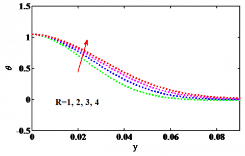 R=\frac{4 \sigma \bar{T}_{\infty}^{-3}}{k_{e} k}, S c=\frac{\vartheta}{D}, R a=\frac{\bar{R} \vartheta\left(\bar{C}_{w}-\bar{C}_{\infty}\right)}{V_{0}^{2}\left(\bar{T}_{w}-\bar{T}_{\infty}\right)}, K r=\frac{k_{1} \vartheta}{V_{0}^{2}}
