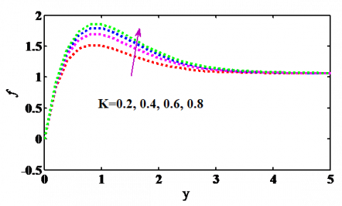 Here Eqns. (26) to (31) are still coupled and non-linear, whose exact solutions are not possible. So we expand ${{f}_{0}},\ {{f}_{1}}\ {{\theta }_{0}}\ {{\theta }_{1}}$ . Initialy we solve equation (30) and equation (31) by using Eq. (32) then we get