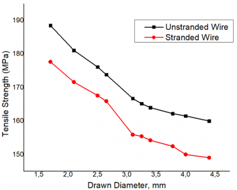 Figure 9. Tensile strength for stranded and unstranded drawn wire