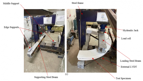 It is becoming more frequent to use horizontally curved girders (beams) for urban interchanges or highway bridges, therefore it is required to build structures that were already curved in plan. The curved beam's form can be circular, elliptical, or parabolic, and it's occasionally made up of circular arcs of varying radii or/and centers [7]. There are many experimental studies that have focused on investigating structural behavior of curved beams subjected to load transversely to its plane, in the other word, torsion is a risk in addition to bending and shear [8-15].