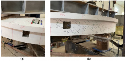 3. With regards to ductility, there is no clear picture as the results differ between a slight increase and decrease as listed in Table 7, it can be noted that no significant effect of utilizing RPC hybridization and CFRP laminates as restoring techniques on the ductility of curved beams.