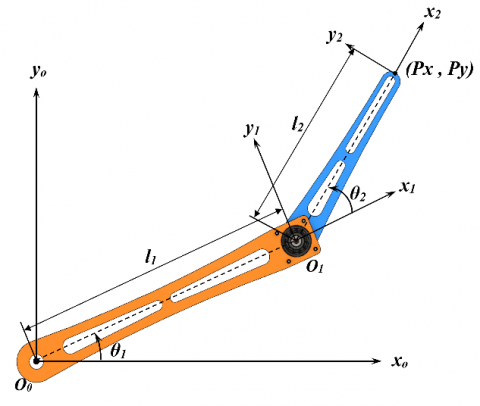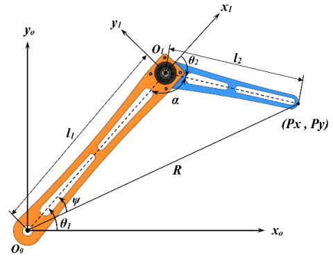 $P y=L_{1} \cdot \sin \theta_{1}+L_{2} \cdot \sin \left(\theta_{1}+\theta_{2}\right)$ (2)