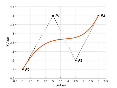 The control polygon of Bezier curve is the polygon determined if the control points are being linked. The curve's geometrical features are determined from the control polygon merely. In addition to that, the curve initiates with (P0) and ends with (Pn), and the other control points just control the shape of carve and not intersect with it. Various examples of Bezier curve for several nth degree are illustrated in Figure 2 [22].