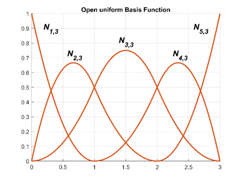 Now, for Knot Vector, it has a significant influence upon the B-spline basis functions Nik(t) and therefore upon the obtained B-spline curve. Basically, (2) kinds of Knot vector being utilized, Open and Periodic, in (2) kinds, Uniform and Non-uniform, as shown in Figure 4 [24].