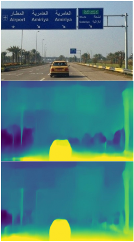 The training and the evaluation process of this network are implemented on the KITTI dataset and benchmark suite [28]. KITTI is a publicly available large-scale outdoor scenes dataset for various tasks such as semantic segmentation, optical flow, object detection, and is widely used for depth estimation. It consists of thousands (about 21k images for training) of labeled RGB images with a resolution of 375×1241 of diverse scenes recorded with cameras and depth sensing equipment (such as the Velodyne HDL-64E laser) from outdoor environments and streets with the conforming ground truth depth maps acquired using mounted equipment on a vehicle. It consists of 8 categories including the “car” and “pedestrian“ classes. The depth network is trained using 7k images from 32 training scenes and use 698 images for testing from 29 scenes. The splitting policy is based on the Eigen policy suggested by Liu et al. [8]. The images were resized to a resolution of 640×480 from 375×1241 for improved computation efficiency to generate an output of 320×224.