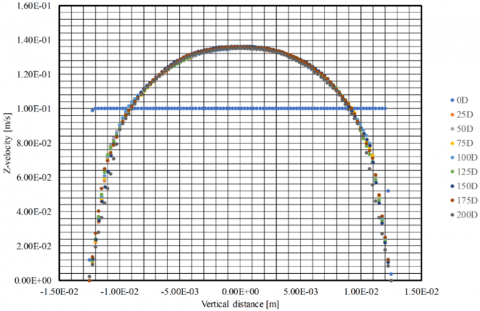 Figure 2. Velocity development a long pipe flow
