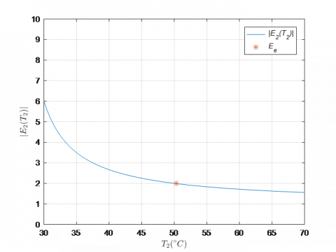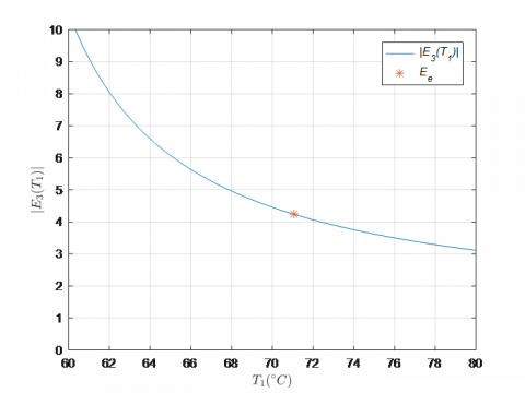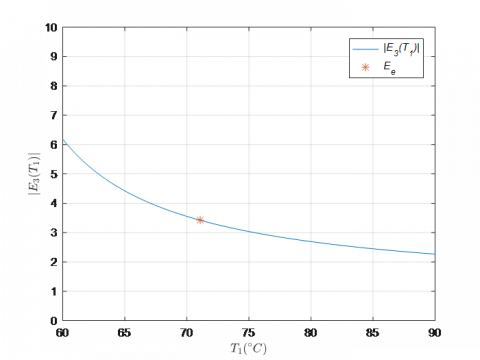 Figure 8. Plot of |E3(T1)|: Elasticity in absolute value of $\widehat{\kappa_{B}}$ with respect to T1 (q1=292.97 W/m2)