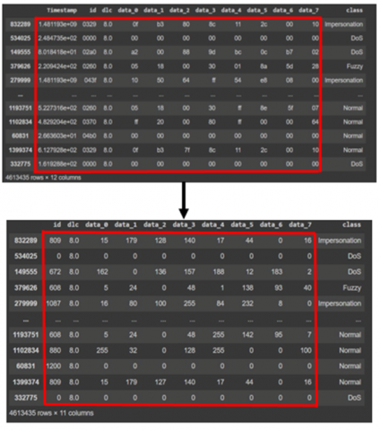- Data: It is the payload conveyed within the CAN traffic. This feature is split into eight samples including Data [0], Data [1], Data [2], Data [3], Data [4], Data [5], Data [6], and Data [7].