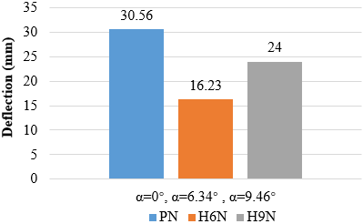 The difference in haunch angle also affects ultimate load, where the model with = 9.46° haunch angle is weaker than the model with α=6.34° haunch angle. For example, solid samples with normal concrete and α = 6.34° were stronger than solid samples with normal concrete and α=9.46° by 10.8% for the ultimate load.