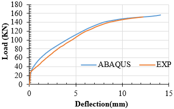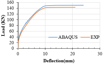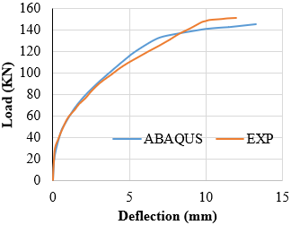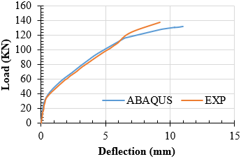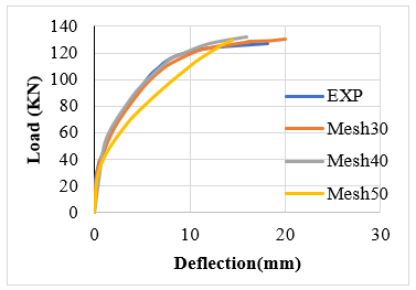 As mentioned earlier, it is clear from the graph of these models that a 30 mm mesh size gives a closer response to the load-deflection curve experimentally and is close to the mesh 40 curve. Therefore, the rest of the samples were analyzed numerically using a mesh size of 30 mm.