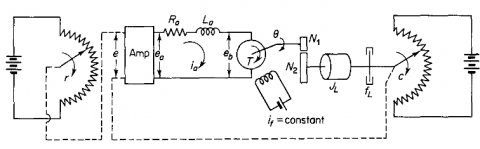 where c is the angular displacement of the output shaft, r is the angular displacement of the reference input shaft, ER1 and ER2 are the position control system's errors at t1 and t2, and t = (t2 - t1).