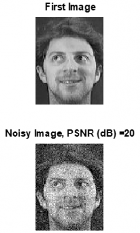 The result when using two similar images (an original image and a noisy version of it) is shown in Figures 1-3 for different and various types of images: Human face, landscape, and geometric shape. We used the different images "coins" and "cameraman" from MATLAB, and a human face from the famous face database AT&T [28].
