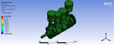 In this section the results and steps of the simulation of the mechanism (pistons-connecting rod-crankshaft) based on FEM in ANSYS environment. Several stresses are taken into consideration while simulating the mechanism.