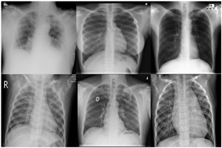 Figure 1. Included in the sample images of chest X-ray used in this study (a) COVID 19; (b) Pneumonia; (c) Normal; (d) Tuberculosis positive; (e) lung-opacity; (f) bacterial pneumonia