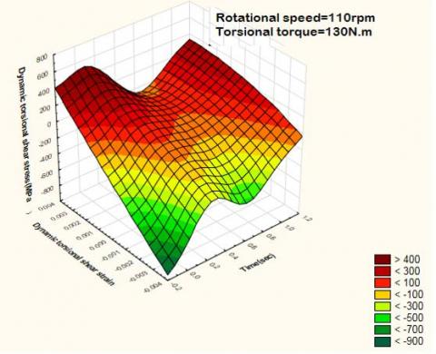 Figure 6. Practical torsional shear strain of twist drill tool at 110rpm and 130N.m