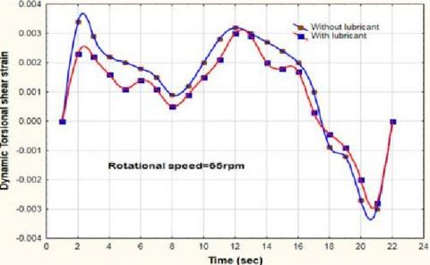 Figure 5. Practical torsional shear strain of twist drill tool at 65rpm and 220N.m
