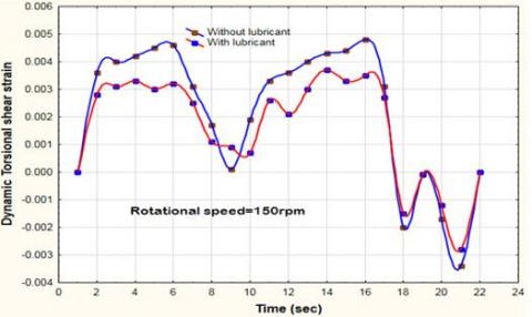 Figure 7. Practical torsional shear strain of twist drill tool at 150rpm and 95N.m