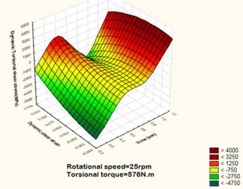 Figure 4. Practical torsional shear strain of twist drill tool at 25rpm and 576N.m