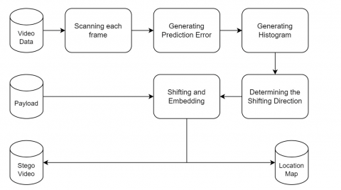 Subsequent research developed a prediction error (PE) between two sequential frames [8]. The PE value is derived from the difference between corresponding pixels in the frames, generating a histogram where the embedding process is to be conducted. Similar to prior research, the shifting direction is determined to provide the embedding space.