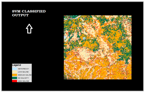 SVM is a supervised machine learning classification algorithm very popularly used for mapping changes in LULC. In this approach a hyperplane is developed which separates the data points into a number of classes. In this research work, SVM has been implemented to find the distribution and extent of soil salinization by classifying the study area into the following classes: water bodies, low saline, medium saline, high saline and no salinity. The hyperplanes are constructed such that the distance between the classes is maximum and that classes are homogeneous. Training process plays a key role in determining the accuracy of the algorithm [22].