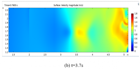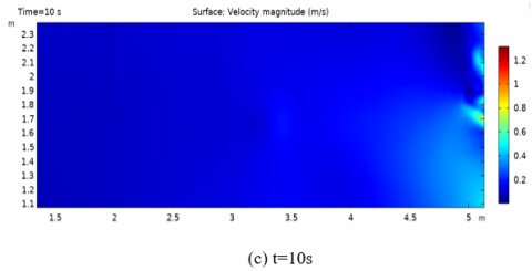 Figure 6. Simulation of the velocity of the breakwater breaking process