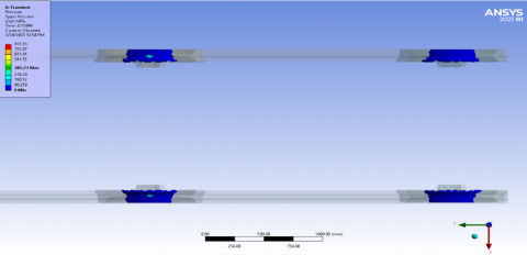 Where the motion diagram is accelerating with a time of 10 seconds simulation in the ANSYS program because the simulation process requires a large amount of time with an increase in the study time as shown in Figure 5.