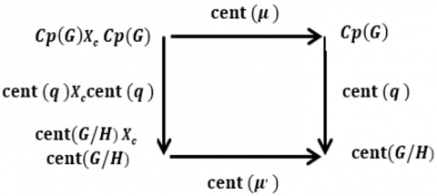 Now, let $\mu^{\prime}$ and $v^{\prime}$ be proximally maps. If $\operatorname{cent}(\mu)$ and cent $\left(\mu^{\prime}\right)$ are the Center multiplication in $G$ and $G / H$ and cent $(v)$, cent $\left(v^{\prime}\right)$ the center inversion in $G$ and $G / H$ respectively, then cent $\left(\mu^{\prime}\right)$, cent $\left(v^{\prime}\right)$ are uniquely defined by Commutatively of the following diagrams as shown in Figure 1 and Figure 2.