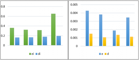 The Figures 1 and 2 and Tables 1 and 2 presented display the duration of generating public and private keys $\left(e_i, d_i, e\right.$, and $\left.d\right)$, as well as the encryption and decryption times in seconds of 1000-character messages, utilizing distinct prime numbers for both the proposed algorithm and the original RSA algorithm.