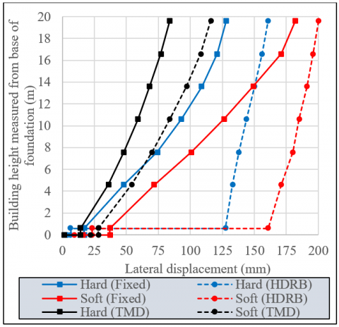 Further investigation is needed to understand the relationship between building seismic response and soil properties when considering soil-structure interaction (SSI) in seismic isolation and Tuned Mass Damper (TMD) efficiency. This study includes key parameters such as isolator type, building height, seismic intensity, and foundation type.