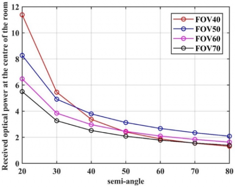 Figure 8. Variety FOV received optical power at the center of the room