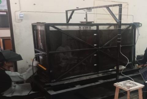 This modeling was carried out on a small scale in the laboratory as shown in Figure 1. The scale used was a 1:10 scale. The sequence of work carried out is an assembly of a shaking table, ether sensor, assembly of Pore Water Pressure sensor, assembly of Optic flow sensor, foundation model making, soil sample testing, and simulation of pile foundation behavior in liquefied soil with shaking table, simulation results