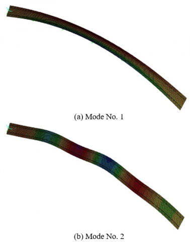 The rate of natural frequency is 2.34Hz from mode No. 3 which has maximum downward vertical displacement. Figure 14 shows the relation between modes and natural frequency and Figure 15 illustrates the modes shape of bridge structure.