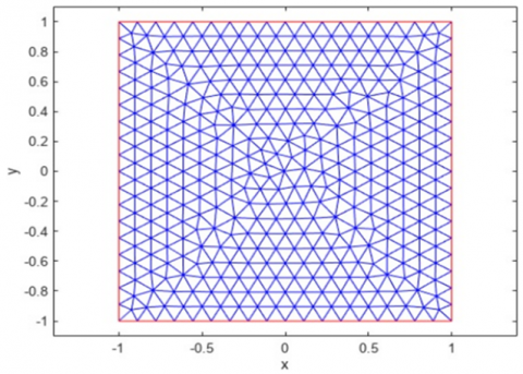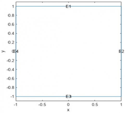 On a square domain, find the solution. This geometry is described by the square g function. Make a model object with geometry included. View the edge labels when creating the geometry (Figure 1).