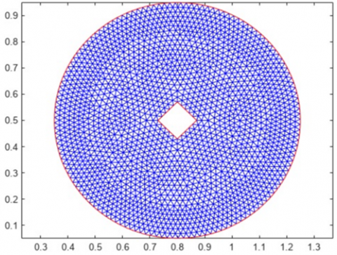 To determine FEM coefficients, boundary situations on the upper (edge 1), lowest (edge 3), and left (edge 4), as well as right (edge 2) and zero Neumann boundary situation. Then, generate and vision the finite element method for the problem is shown in Figure 2.