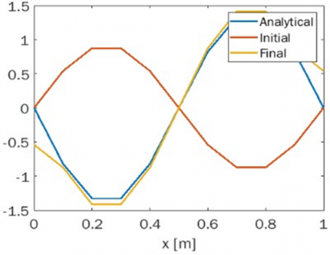 The next step involves applying bounded conditions and solving for the complex amplitude by securing a real-value solution of the Helmholtz equation, which is then stored in the real component of vector u. To visually demonstrate the dynamics of the time-dependent wave equation, an animation is created using the solution derived from the Helmholtz equation as a reference.